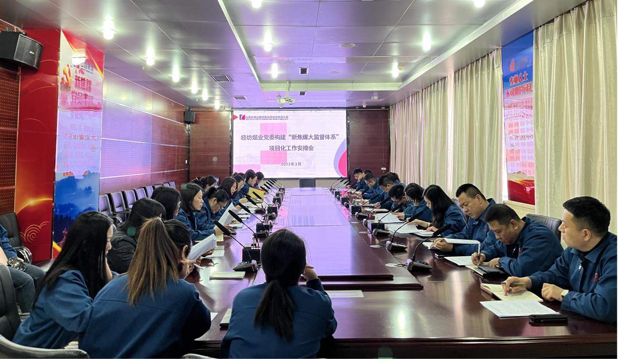 會議對經坊煤業過去一年“新焦煤大監督體系”工作開展情況和取得的初步成效進行簡要匯報,重點解讀了《經坊煤業關于申報2023年度“構建新焦煤大監督體系”實施項目的通知》,提出了監督事項“項目化”構建模式,持續推動監督工作出效益、提效率、見效果。
