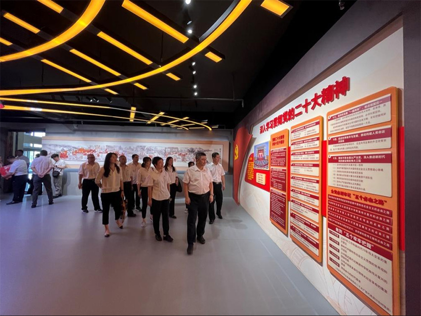 潘海波在參觀展館的過程中,帶領黨員干部學習了習近平新時代中國特色社會主義思想和黨的二十大精神的核心要義,號召全體黨員要率先垂范、以身作則,發揮模范帶頭作用,認真開展主題教育,以理論學習補足精神之鈣、增強企業發展動力,打造基層黨組織堅強戰斗堡壘。