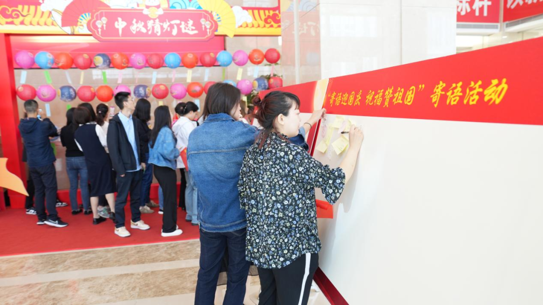 活動現場設置了“寄語迎國慶,祝福贊祖國”簽名寄語墻,干部員工們通過手寫簽名寄語的形式,紛紛向祖國獻上生日祝福?!拔覑勰?,祖國!”“祖國,我為你驕傲!”……大家用樸實真摯的言語寫下了心里話,抒發自己對祖國的熱愛之情,表達了強國復興有我、爭創一流有我的堅定信念。