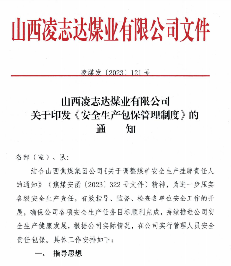 凌志達煤業按照上級安排部署,結合礦井生產實際,對安全管理進行提檔升級,制定了《凌志達煤業安全生產包保管理制度》,督促各級管理人員嚴格履行安全職責,扣緊壓實安全生產責任鏈條,強化風險隱患排查整治,消除現場管理漏洞,為提升安全風險管控能力提供了制度保障。