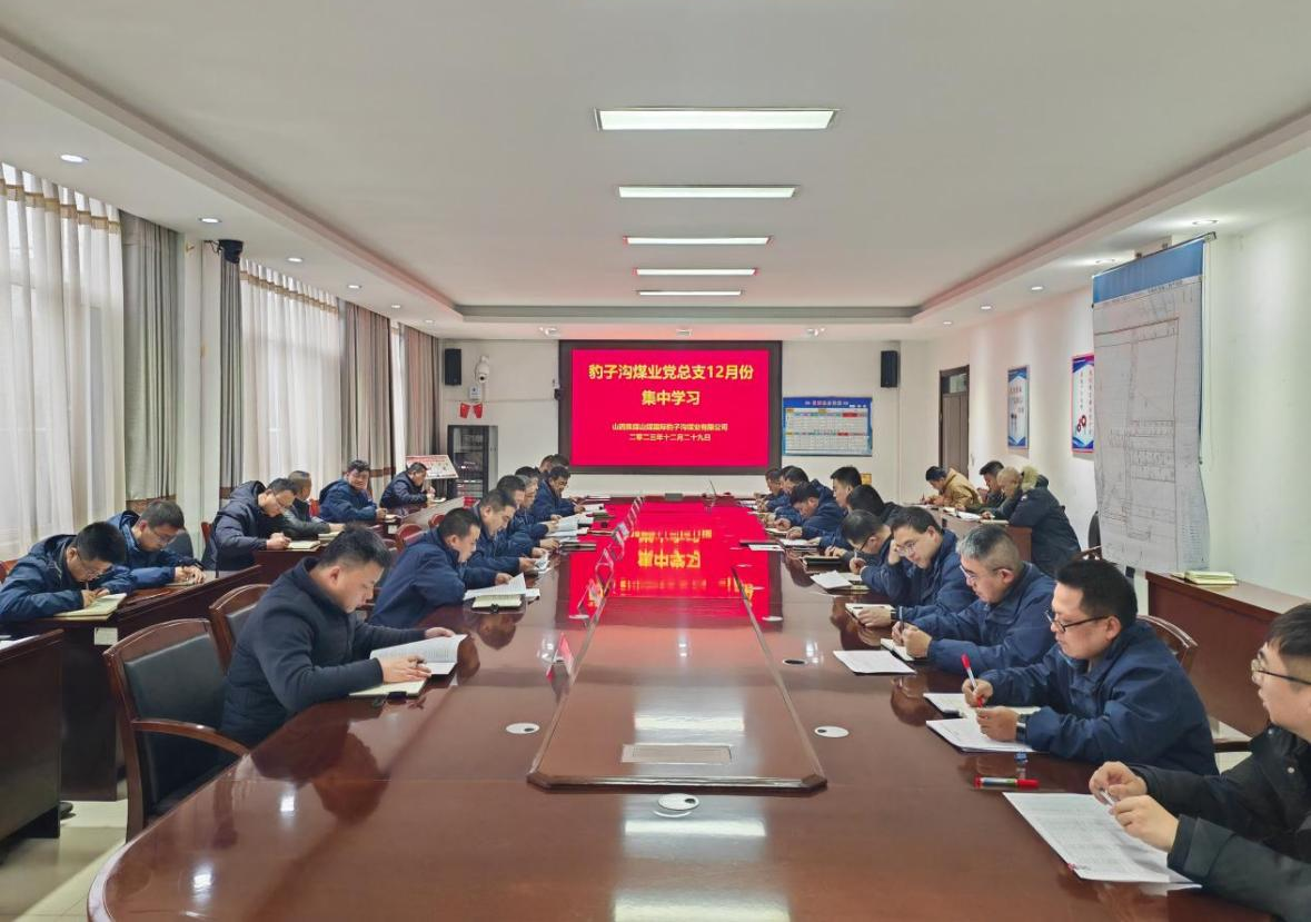 2023年12月29日,豹子溝煤業公司黨總支舉行集體學習,公司領導班子成員、各部室隊組負責人、二級專員以上管理人員參加。黨總支書記、董事長蘇松嶸主持會議。